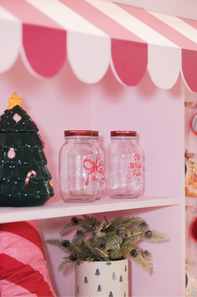 Small decorative touches can guide the eye without overwhelming the space. Salazar recommends adding only a few key pieces, such as stemless glasses that can double for desserts, jars filled with holiday treats, or a single handcrafted ornament positioned as a subtle centerpiece. Curated accents add personality while keeping the table functional.