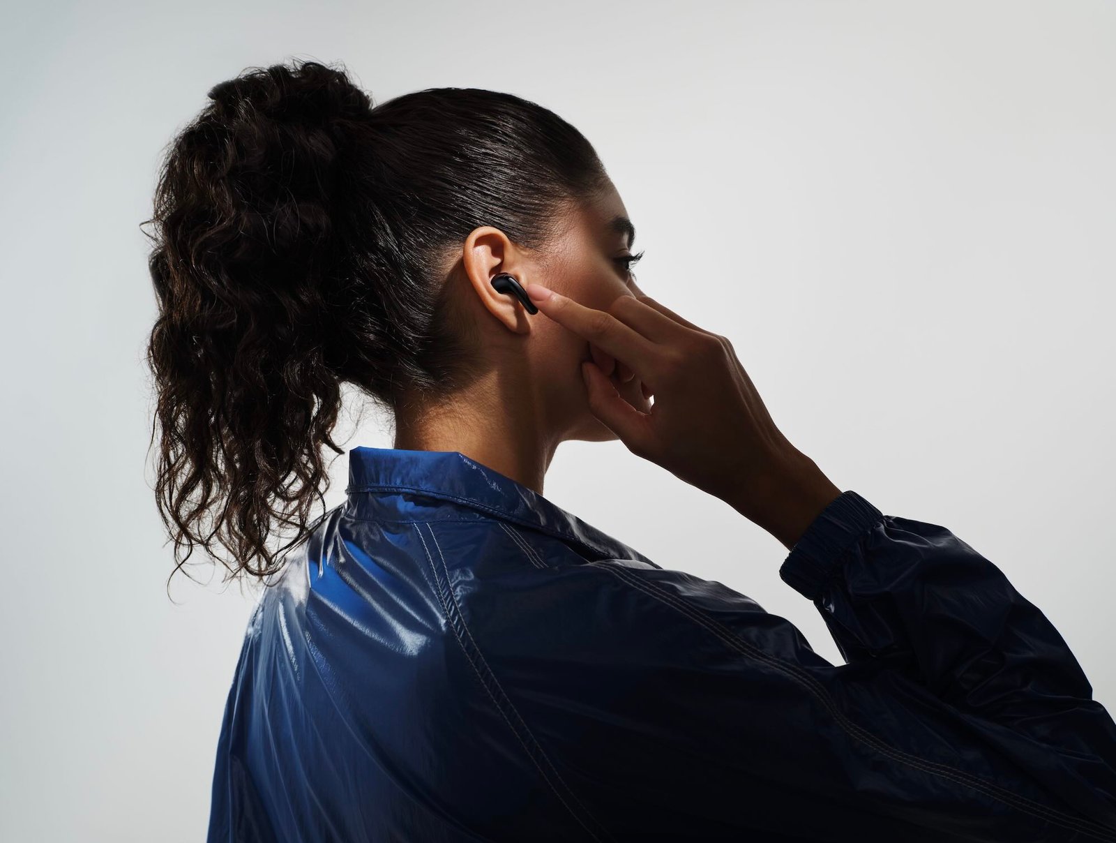 Alongside Transparency mode for maintaining awareness of surroundings, the buds feature up to 42dB wide frequency hybrid active noise cancellation (ANC).13 Using a combination of talk and feedback microphones, ANC mode effectively detects and suppresses a broad range of low-frequency ambient noise. For outdoor calls, dual-mic AI environmental noise cancellation (ENC) comes into play, leveraging the microphone array and AI algorithms to focus on the userās voice, even against up to 6m/s wind speeds.15
